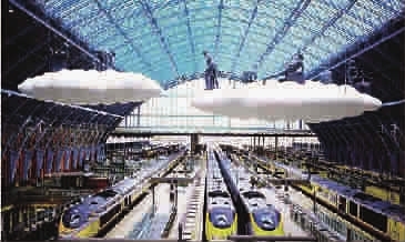2013年4月,由英国设计师Lucy Orta和Jorge Orta设计的浮云(Clouds)在伦敦圣潘克拉斯车站(St Pancras)展出。