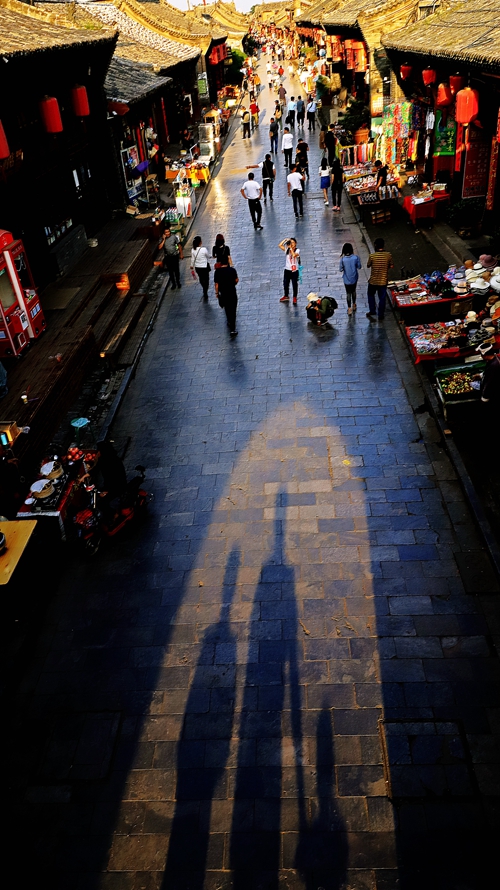 微评:夕阳西下,日光与阴影形成明暗对比,城门楼洞半圆的轮廓与一家三口长长的剪影形成造型对比,剪影与真人形成大小对比,青砖灰瓦与大红灯笼形成色彩对比。希望表现古巷的悠长和如诗如画的美感,表达现代中国人对历史的尊重和古城获得新生后的喜悦。