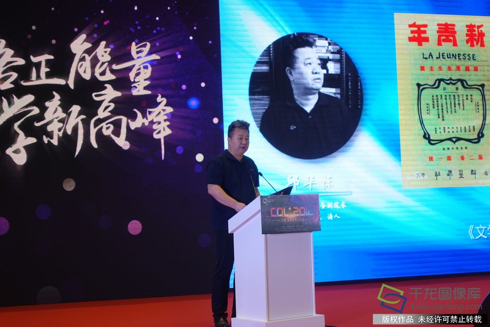 7月8日上午,2018第二届中国“网络文学+”大会新闻发布会在京举办。图为鲁迅文学院常务副院长邱华栋发言。 千龙网记者 陈晨摄
