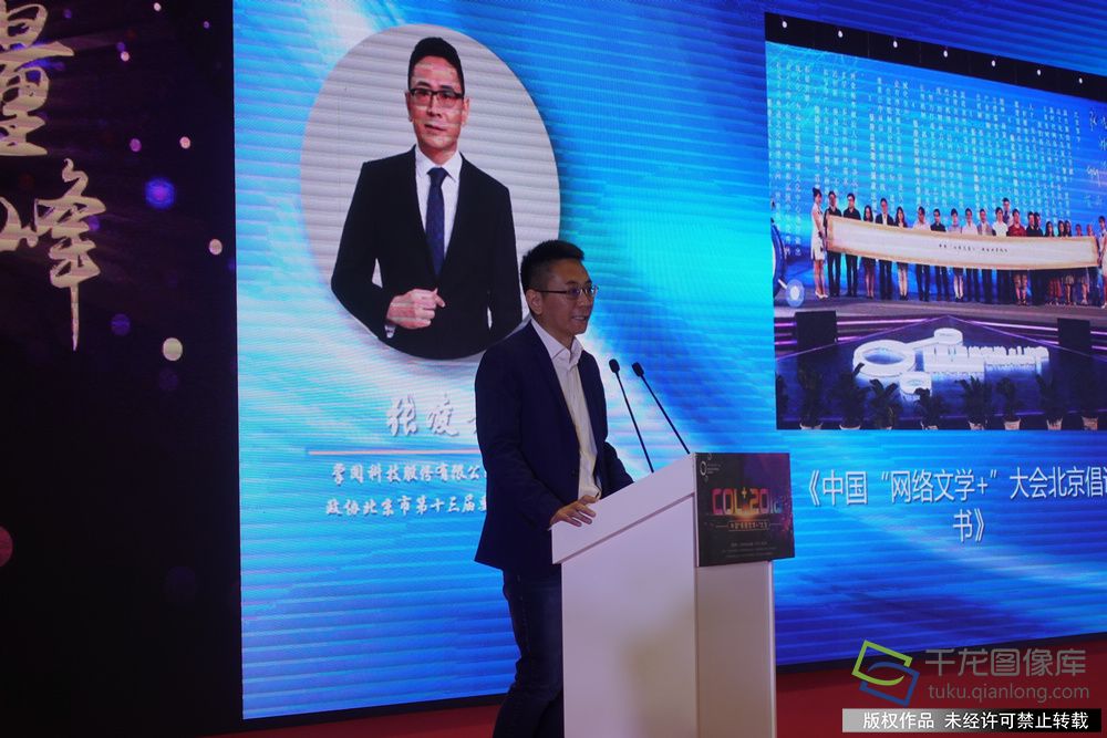 7月8日上午,2018第二届中国“网络文学+”大会新闻发布会在京举办。图为掌阅科技创始人张凌云发言。 千龙网记者 陈晨摄