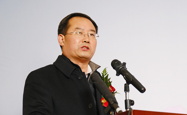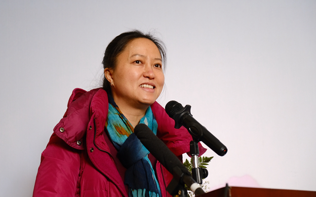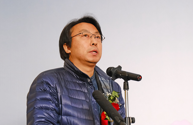 问道青山-赵学伦书画展开幕式现场,北京理工大学人文学院副书记、副院长许欣代表主办方讲话并表示祝贺。
