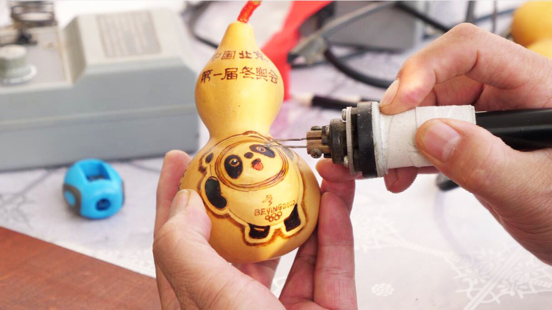 刘振文将自己擅长的葫芦烙画与北京2022年冬奥会和冬残奥会吉祥物相结合制作了一组作品,借此来传播冬奥文化,传播中国传统文化。
