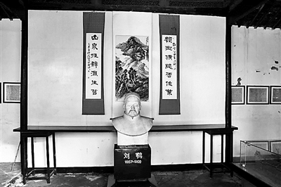 刘鹗故居的整体面积很小,占地估计不足300平方米,也许不是原来的规模。好在这些故居都是老式建筑,从陈旧程度看,不像是重新翻盖者,正堂里也陈设着刘鹗的半身胸像,后面竖挂着中堂和对联以及独板条案,没有八仙桌及太师椅。这跟一般的旧式人家厅堂摆放方式很有些不同,刘鹗是太谷学派传人,我猜测这是不是太谷学派人特有的一种摆法,可惜没有见到关于太谷学派室内陈设方面的研究文章。想到这一层,我开始细细地观察室内的物体,感觉那些家具没有什么特别之处。转念细想,这都是今人重新所做的布置,当年刘鹗居住在这里的时候,究竟是如何摆放的,恐怕到今天已经无法进行确认。