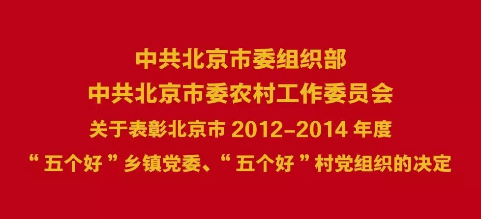 党的十八大以来,全市农村各级党组织认真贯彻落实中央要求和市委部署,紧紧围绕推动社会主义新农村建设、促进城乡发展一体化来谋划和推进基层党建工作,为推动首都农村经济社会发展提供了坚强组织保证,涌现出了一批先进典型。为总结经验,充分发挥典型的示范带动作用,推动全市农村基层党建工作全面提升,经市委组织部、市委农工委研究决定,对朝阳区南磨房乡党委等40个市“五个好”乡镇党委、海淀区海淀镇青龙桥村党支部等200个市“五个好”村党组织,予以表彰。