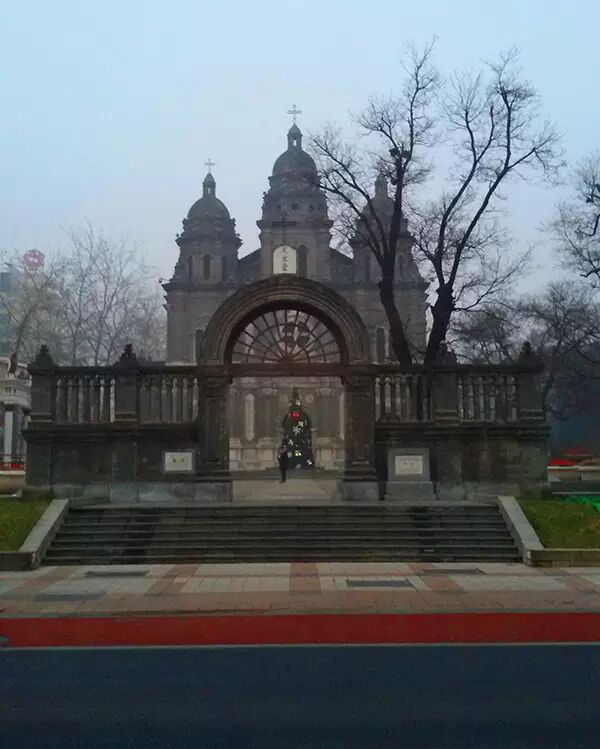 王府井天主堂位于王府井步行街的最深处,如果坐地铁从王府井站下车,出地铁口,一路经过东方新天地、新东安商场等繁华的购物场所之后,再往前走,会稍显“落寞”,以为这样就到了街道的尽头,但是就在打算原路返回的时候,也就到了王府井天主堂所在的位置。它处于“闹市”,却异常低调,这与它的建筑风格气质格外一致。
