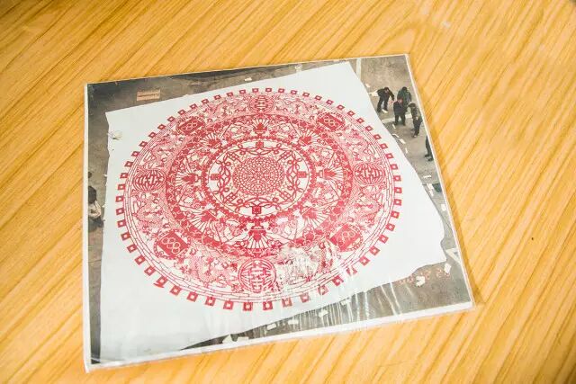 这件作品创作历时三个月,用纸140张,面积达到90平方米。作品设计为八层圆花,中心图案为八个“北京”字型。含义是以北京为中心,北京市代表中国申办2008年夏季奥运会。