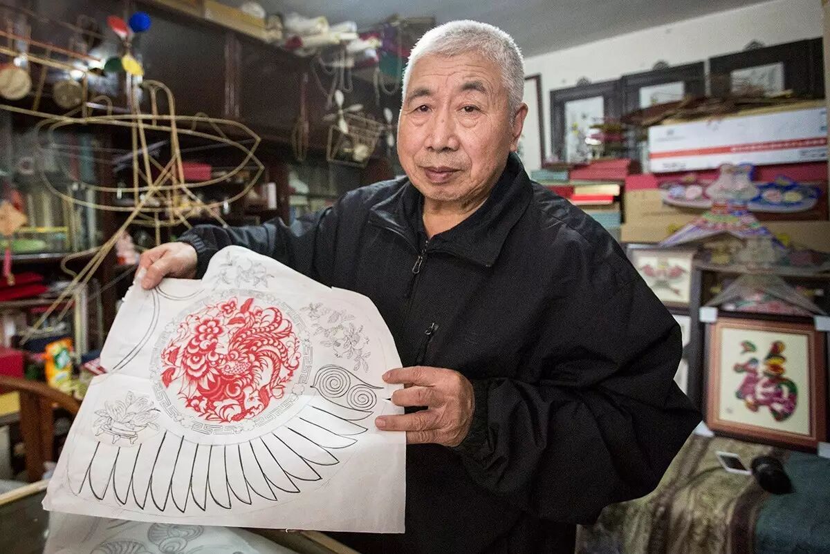 “公鸡啄蚰蜓”剪纸