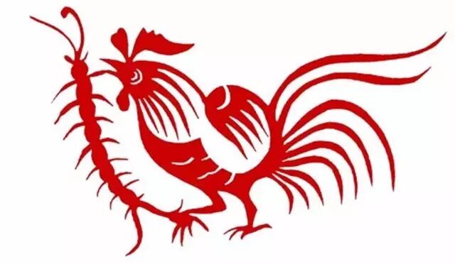 在民间,端午节有“驱五毒”的传统,人们经常会在自家张贴“公鸡吃蝎子”“公鸡啄蚰蜓”的剪纸,用来防止毒气入侵。这是由于人们把公鸡被比作是太阳的化身,是阳性与刚猛的代表,金鸡报晓时光明能驱走黑暗,万物之间又相生相克,公鸡代表光明也是五毒(蝎、蛇、蜈蚣、壁虎、蟾蜍)的克星。