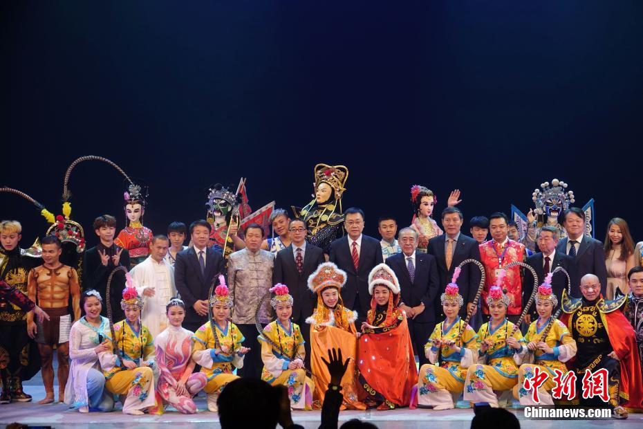 当地时间1月6日晚,2017年“文化中国·四海同春”访演活动首场演出在日本名古屋市青少年中心剧场上演。本场演出节目以木偶剧为主轴,以中国国家级首批非物质文化遗产——川北大木偶剧表演为特色,融合中华传统文化艺术中具有代表性的杂技、武术、川剧小品、变脸、茶艺等绝技绝活。图为演出结束后中国驻名古屋总领事邓伟、艺术团团长任启标等上台与演员合影留念。中新社记者 陆春艳 摄
