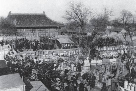 “旧京庙会之说,乃每月定期借大寺院之广场陈售百货,以便城郊居民。乡民于是日挟所制来此求售,便购所需以归。城中妇女亦可不必远出而得其所需。”
