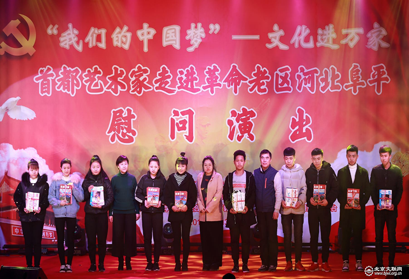 演出期间,《北京纪事》《东方少年》杂志社领导和北京书法艺术家还为阜平职教中心学生及阜平人民赠送了图书和春联及书法作品,把文化的种子播撒到孩子们中间,用酣畅的笔墨为老区人民送上新年的祝福。据悉,《东方少年》杂志社计划在阜平然尔图书馆建设一个阅读基地,陆续开展作家进校园活动。