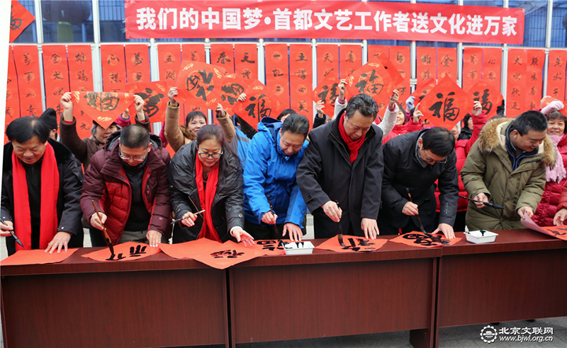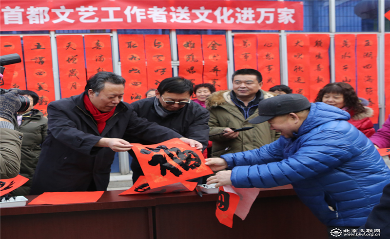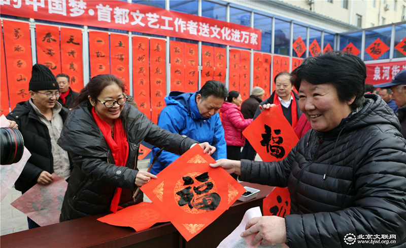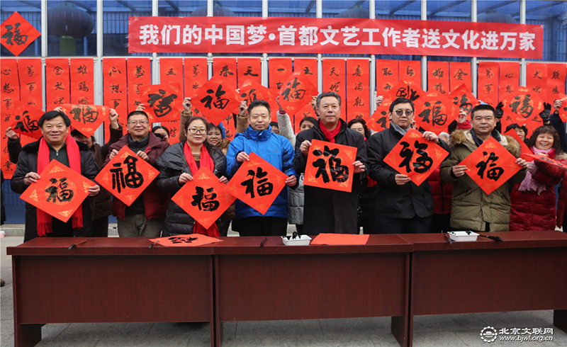 千龙网讯 1月17日,由北京市文联、北京书法家协会主办的“我们的中国梦•首都文艺工作者送文化进万家”,宣传贯彻党的十九大精神,不忘初心、牢记使命,“两节”期间系列慰问活动第三场在怀柔区泉河街道潘家园村举办。该村于明朝初年建村,至今已有700多年的历史。原位于怀河西岸,因修建怀柔水库1958年搬迁到现在的村落。目前村中有302户506口人。