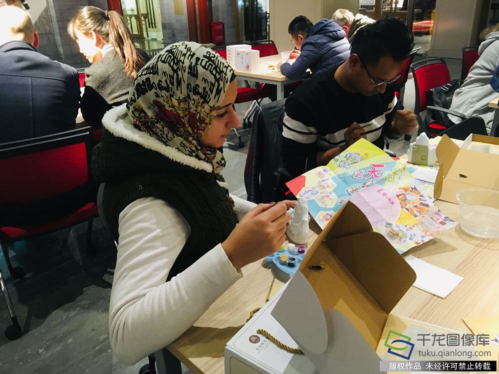 11月15日,“丝路大V北京行”文化篇启动。图为参访团成员在彩绘兔儿爷。千龙网记者 王焕摄