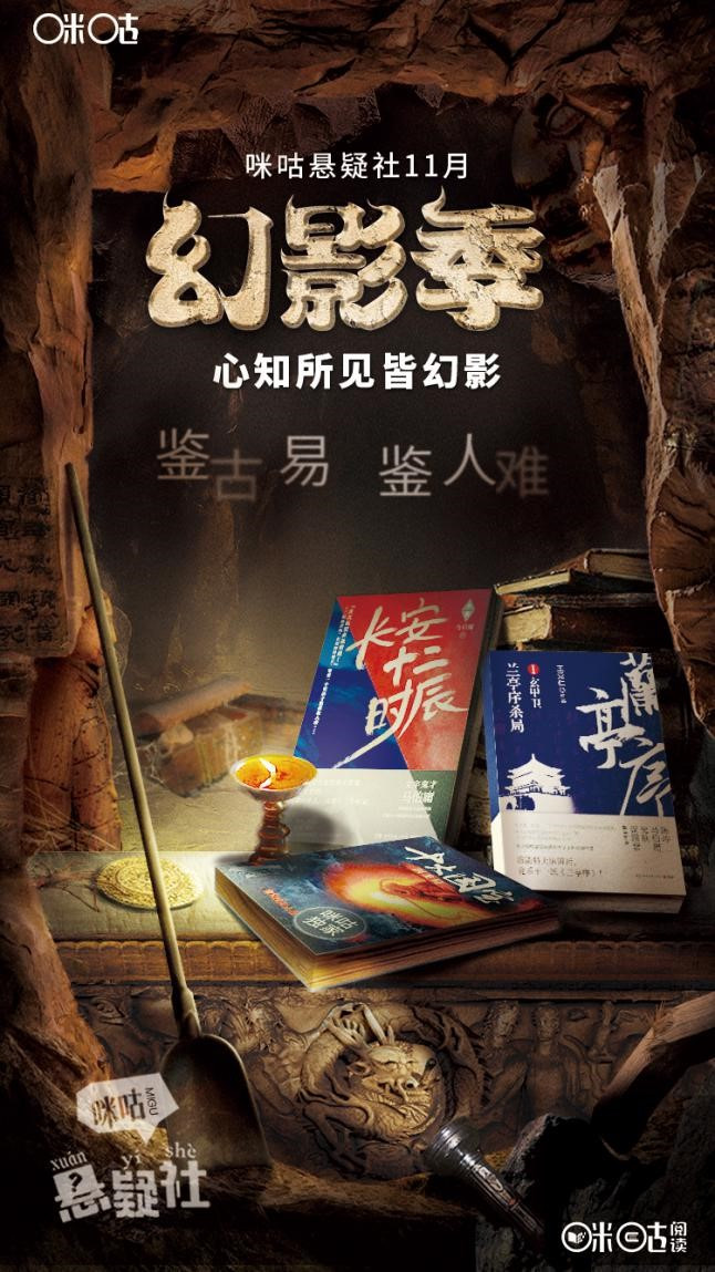 咪咕阅读作为国内最大的数字阅读平台之一,在悬疑这个细分领域也一直鼓励原著作品的创作,并于2017年正式成立咪咕悬疑社,不仅在作品补给上囊括了市面上绝大部分悬疑小说,还通过一系列精彩的活动,提升读者的阅读体验。近期,咪咕悬疑社十一月悬疑“幻影”季已正式启动,除了马伯庸、天下霸唱之外,冶文彪、王觉仁、阿菩等悬疑名家也集结于此,诸多历史、盗墓等题材的热门悬疑小说强势上线。