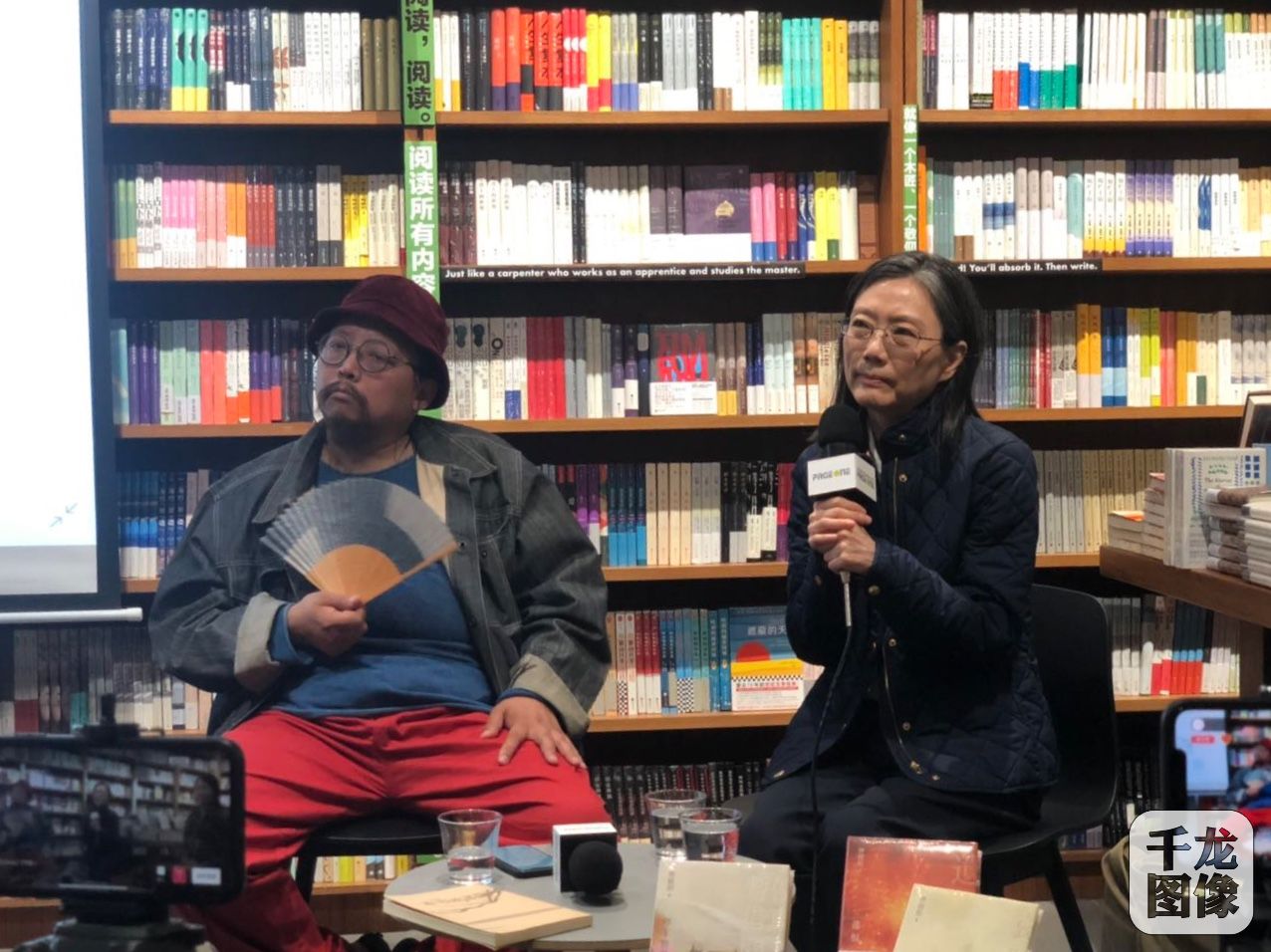 10月20日下午,华语文坛著名作家钟晓阳携新书“小说三部曲”做客Page One·三里屯书店,与嘉宾编剧史航一起,和读者聊了聊写作背后的故事。图为活动现场。千龙网 见习记者 罗晓静/摄
