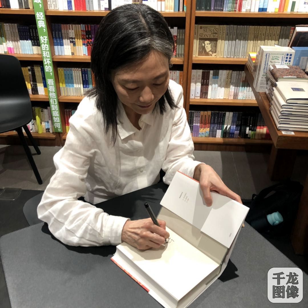 10月20日下午,华语文坛著名作家钟晓阳携新书“小说三部曲”做客Page One·三里屯书店,与嘉宾编剧史航一起,和读者聊了聊写作背后的故事。图为钟晓阳新书现场签售。千龙网 见习记者 罗晓静/摄