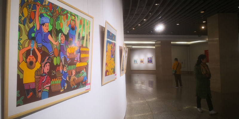 11月20日,“中国梦 壮乡情”广西靖西壮族农民画北京展拉开序幕。主办方供图 千龙网发