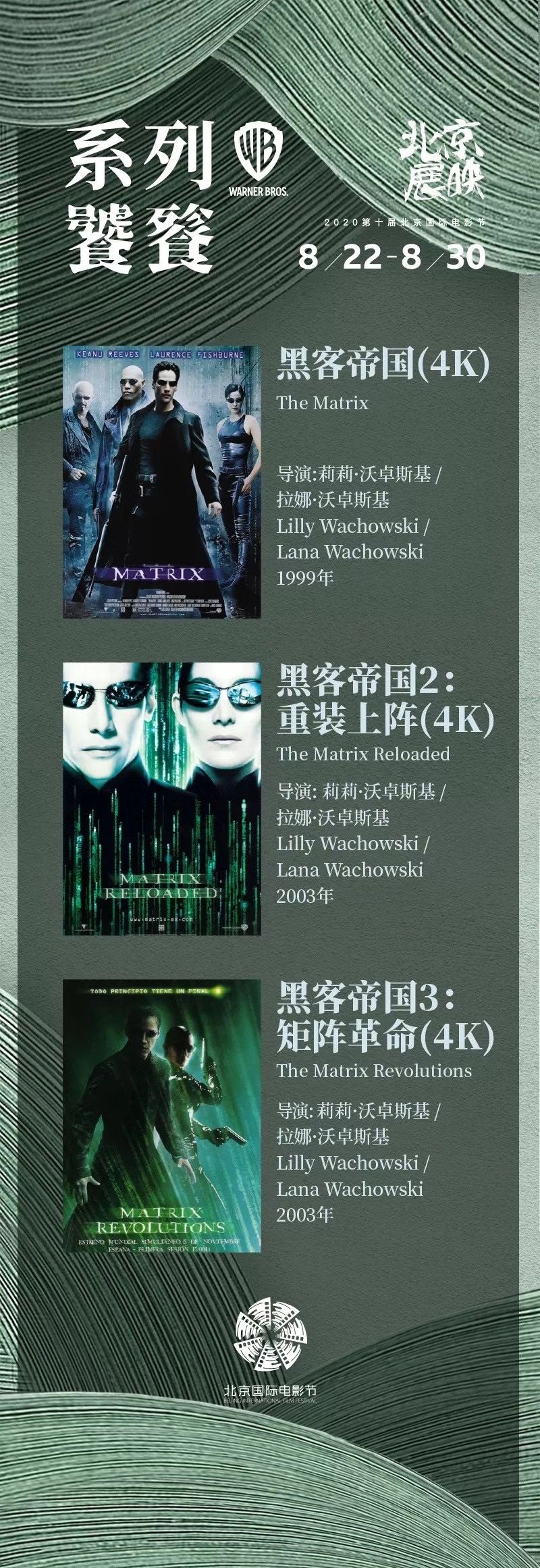 8月16日,第10届北京国际电影节陆续公布更多展映片单,包括4K修复版本的《黑客帝国》三部曲以及登陆“IMAX钜献”单元的《阿基拉》 《阿甘正传》 《现代启示录》等经典影片。