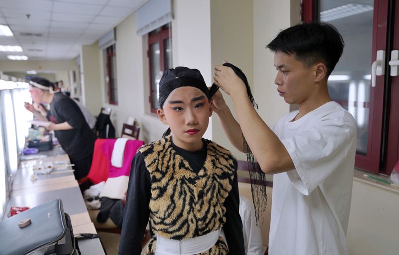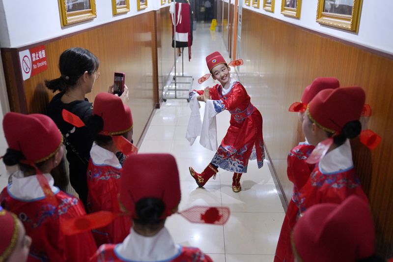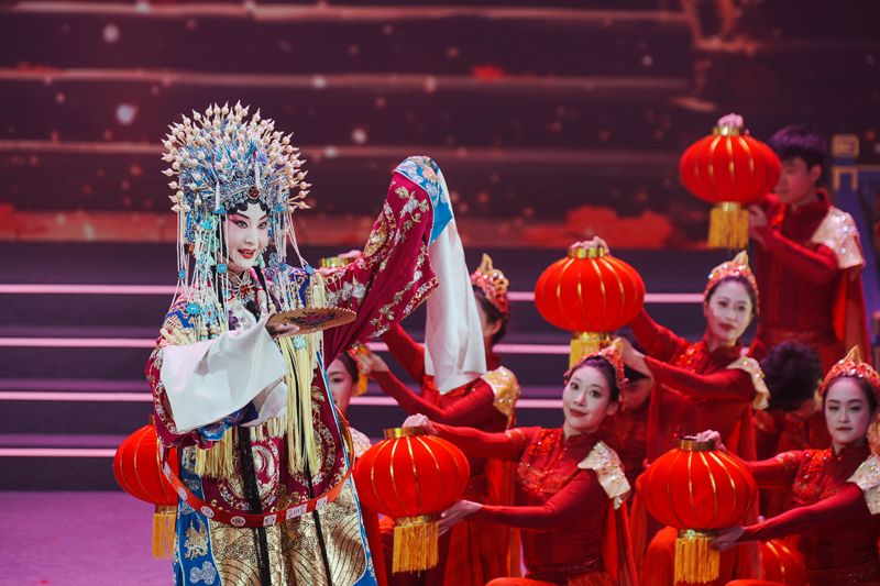 10月15日晚,由中共北京市委宣传部、市文联指导,中共北京市西城区委宣传部、区文联主办,国家京剧院、中国戏曲学院、北京京剧院、安徽省徽京剧院支持的“徽韵流芳 京聚西城”——2025京剧文化季在北京人民剧场启幕。图为开场演出。