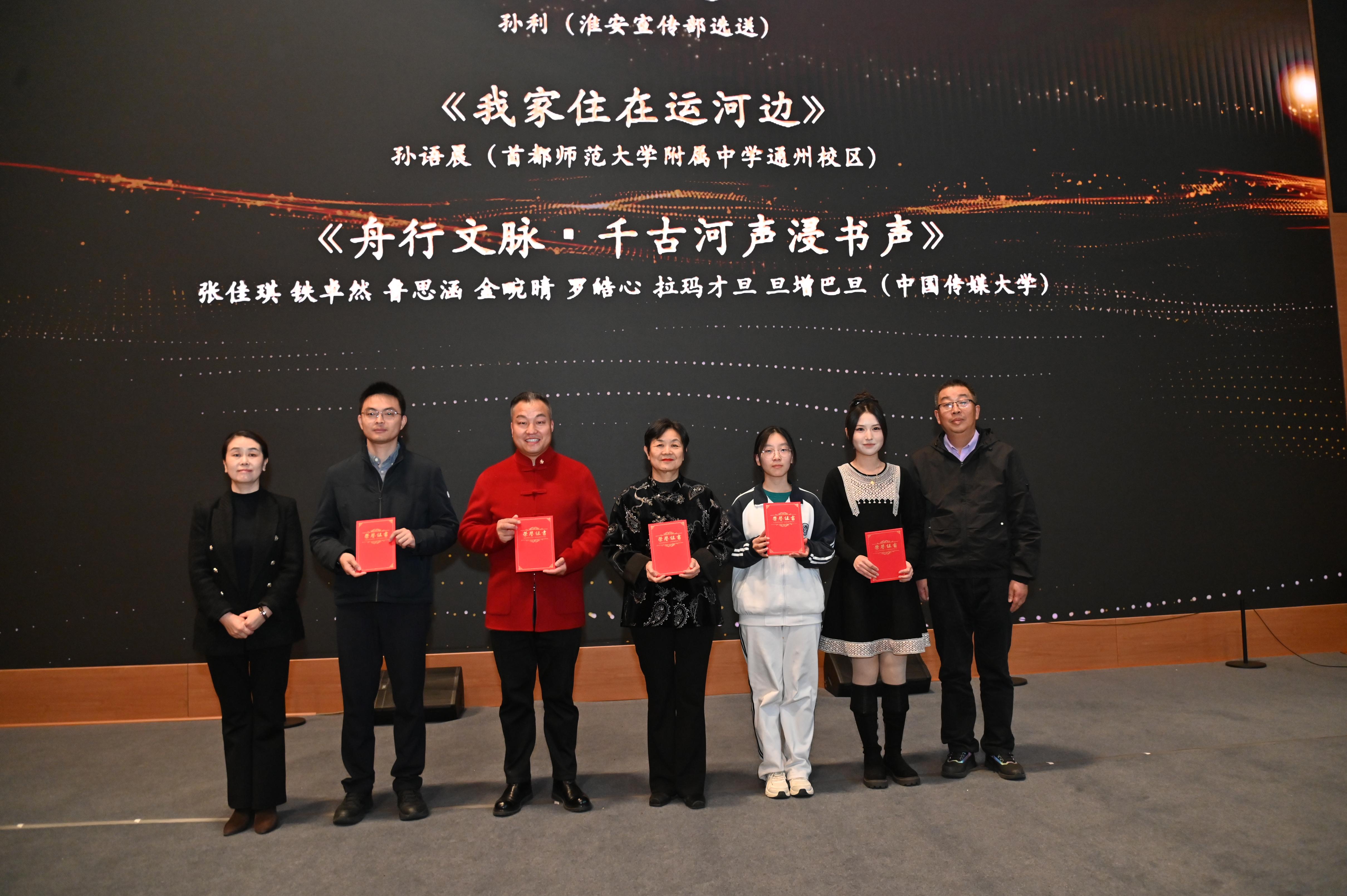 经过多轮严格评审,北京市通州区非遗口技《运河声声》、河南省郑州市非遗保护和文旅文创融合发展中心选送的武术表演《运河武魂——苌家拳的千年传承》、江苏省淮安市委宣传部选送的摄影作品《黄金水道》、首都师范大学附属中学通州校区语晨创作的短视频《我家住在运河边》、中国传媒大学学生团队创作的H5交互作品《舟行文脉·千古河声浸书声》5件作品获评一等作品;中国传媒大学学生的朗诵作品《我是一条古老的河流》、河南王惠一家投稿作品琵琶原创曲《运河魂》、山东文化馆报送的歌舞表演《长河安澜》等10件作品获评二等作品;三等作品25件;优秀作品46件。