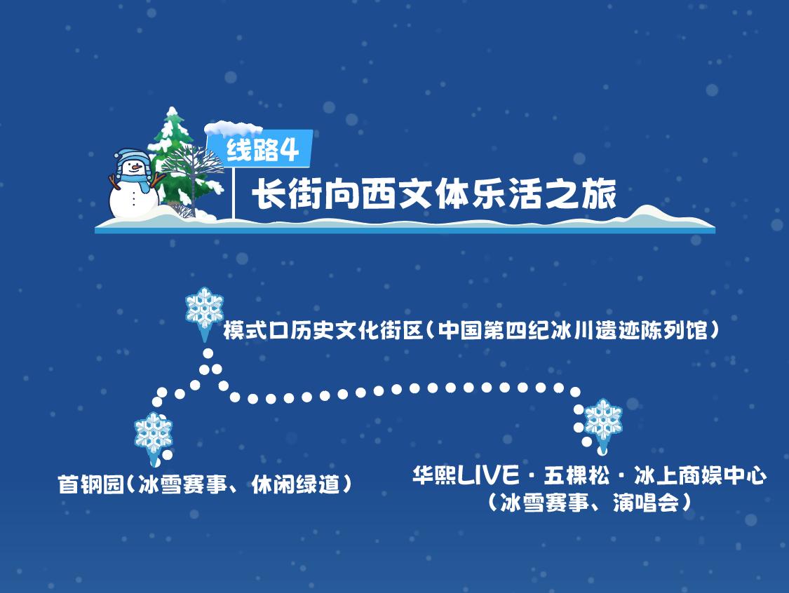 长街向西文体乐活之旅以华熙LIVE·五棵松和首钢园为核心,将工业风、冰雪赛事、潮流娱乐与冰川科普相结合,打造年轻态的酷飒冰雪体验。