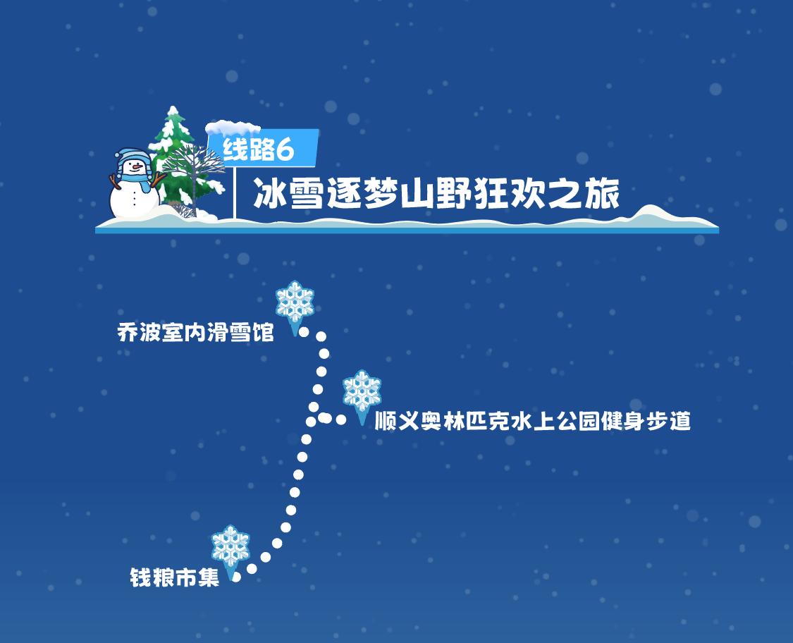 冰雪逐梦山野狂欢之旅从烟火气十足的钱粮市集,到顺义奥林匹克水上公园的镜面冰湖,再到乔波室内滑雪馆的四季雪道,实现全天候的冰雪逐梦。