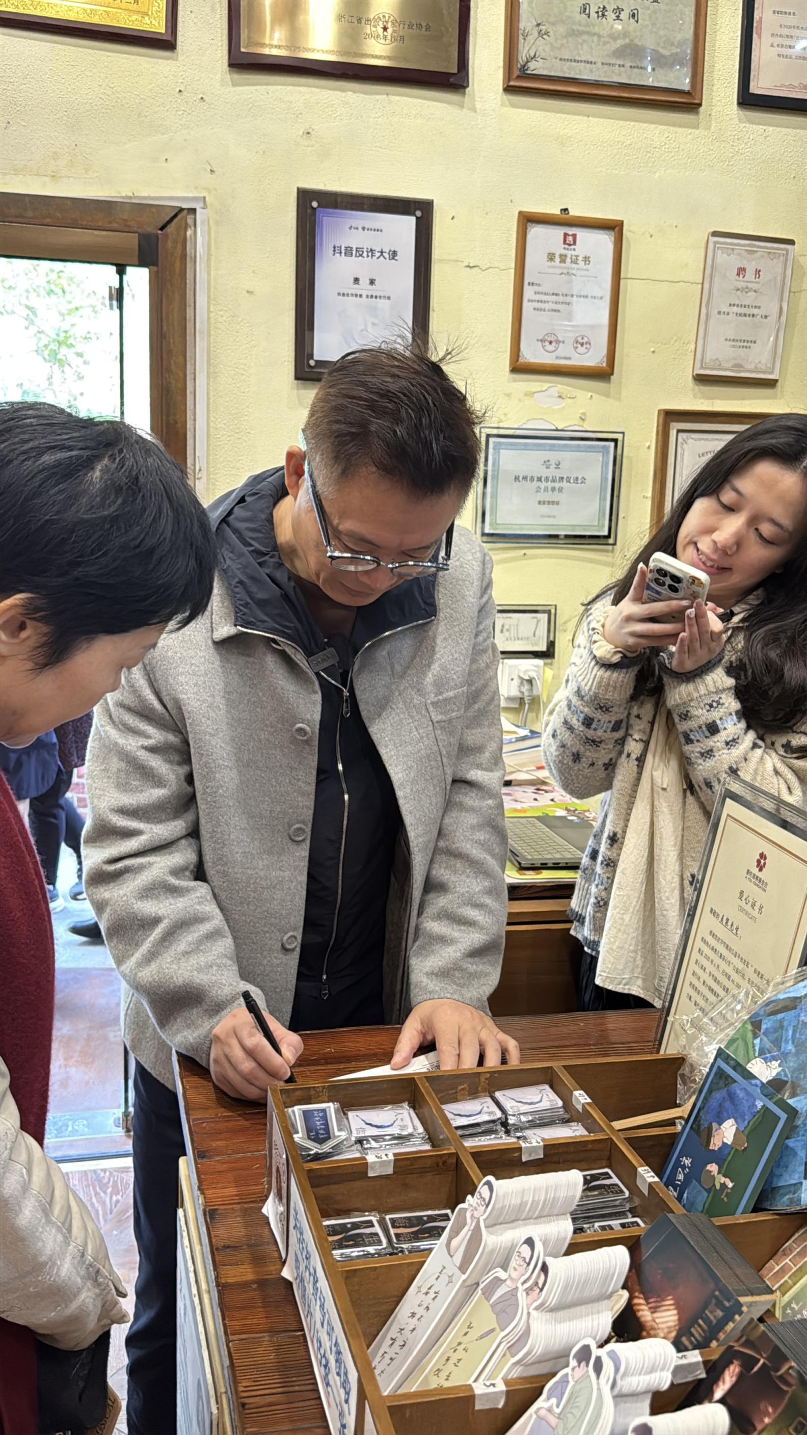麦家走出理想谷,担心打扰他的读者这才围拢了过来,麦家和大家合影、聊天,给大家签名,读者们则表达着对理想谷的喜爱,对他作品的喜爱。作家与读者真诚、热烈地互动,不仅发生在阅读中,同样发生在现实世界里,这个瞬间很奇妙,也很动人。