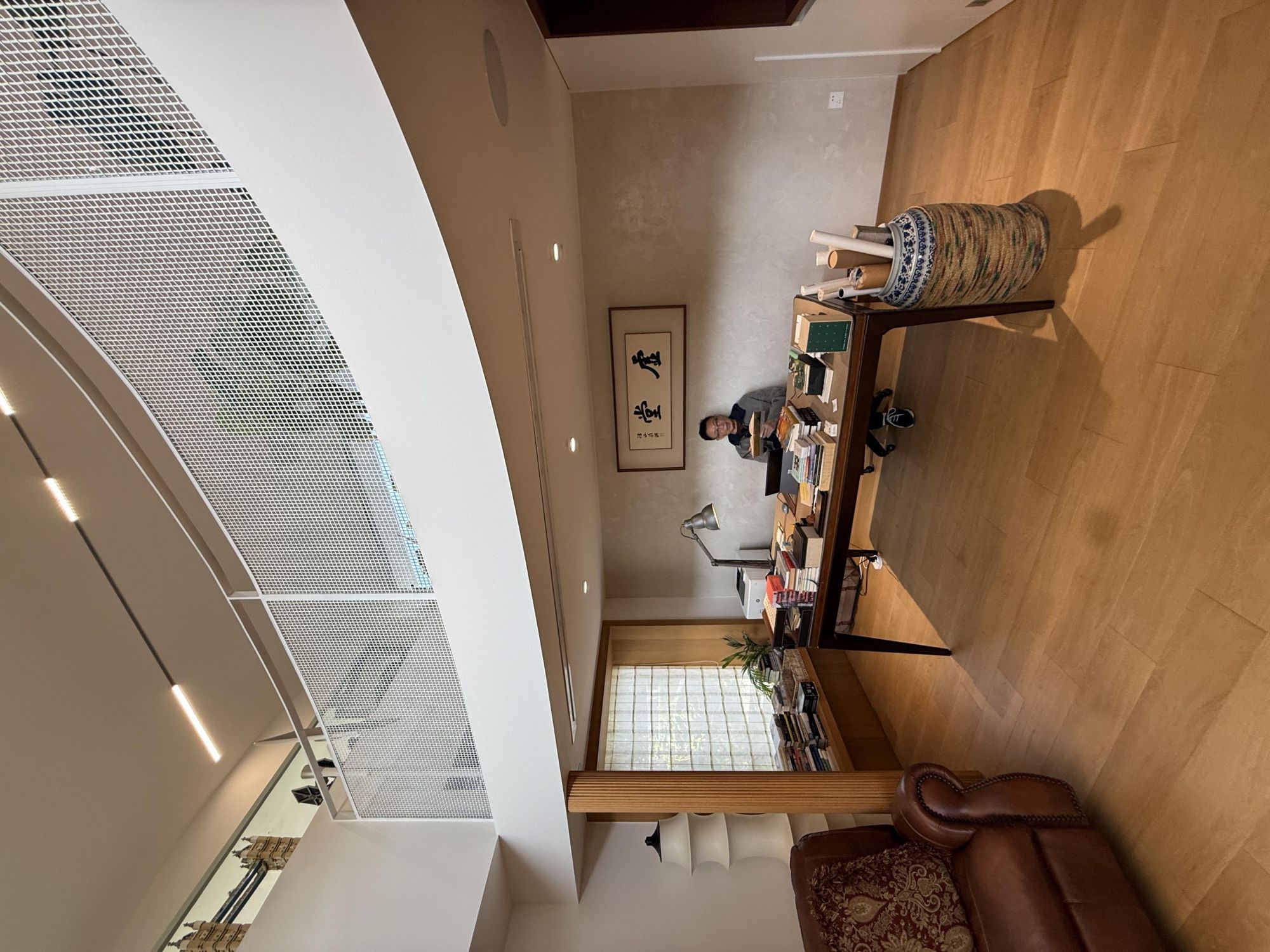 麦家理想谷有300多平方米,面积不算大,承载的理想却很丰盈。一楼临窗安置窄窄的小床,挨墙的床边整齐堆放着一排书,枕边阅读的氛围感瞬间拉满。麦家说,随着年龄的增长自己变得松弛了,他想把这份轻松传递给读者,大家可以在书桌边读,可以窝在沙发上打发时光,也可以躺下来畅快阅读。