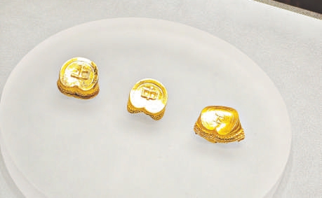 底部刻有“上”“中”“下”铭文的褭蹏金与麟趾金,以精湛花丝镶嵌工艺铸就。记者 方非 摄