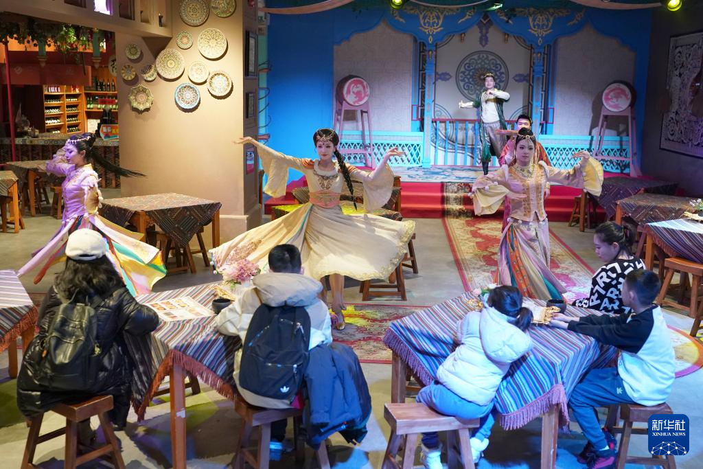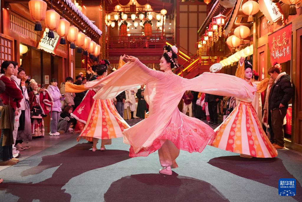 12月23日,演员在街区内进行沉浸式表演《乐舞胡旋》。新华社记者 邵瑞 摄