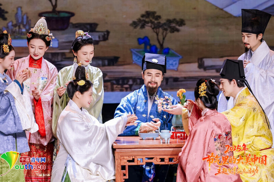 中国古代服饰复原实践基地、中国衣冠服饰复原团队表演《传统秋季仪式复现》。中国青年网记者 高蕾 摄