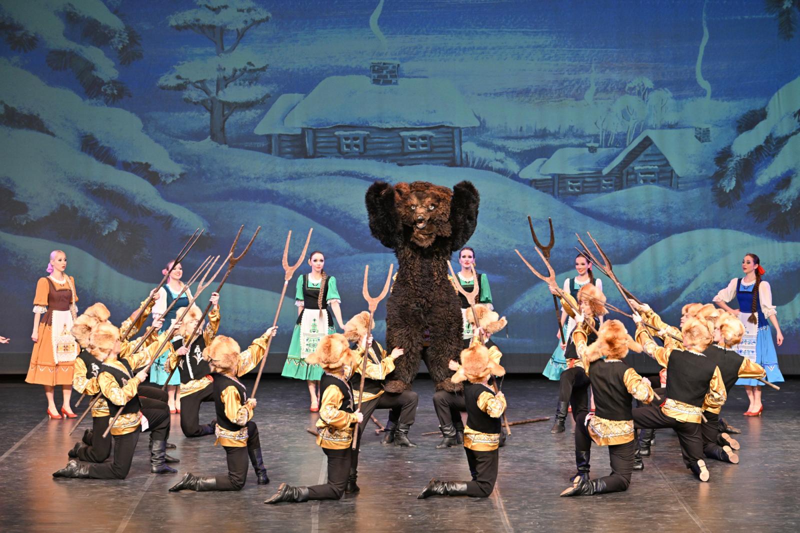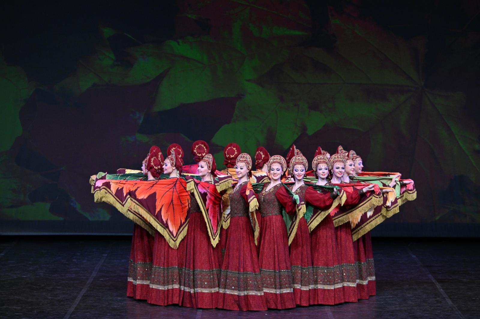 这一次,“小白桦”带着经典剧目再次归来,回顾并展望两国的深厚情谊。《白桦献礼》演出共包含15支作品:女子环舞《小白桦》中,“云步”惊艳,灵动明丽;女子舞蹈《秋日》中,少女们的头巾被染成金黄、橙红,时而骤然扬起,时而平稳飘动,舞台上似有落叶漫天飞舞;男子舞蹈《马车夫之歌》中,短暂休憩的“车夫”以精妙复杂的舞步相互切磋,继而带着热血奔向广袤大地;《西伯利亚组舞》是充满趣味的三幕舞蹈作品,“猎熊”一段尤为精彩,看似威严可怖的“熊”藏着一个可亲活泼的灵魂,最终,它在热烈的舞蹈中成为西伯利亚人民团结与力量的象征……