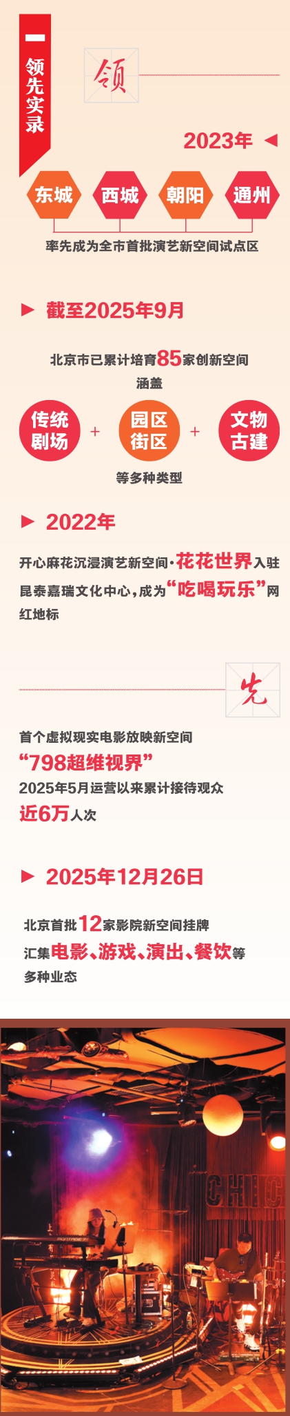 当电影院不再只是播放电影的场所,而成为连接艺术、社交、教育与消费的枢纽;当演艺新空间的“新”打破传统剧场的边界,将商业楼宇、百年戏楼、文化场馆等转化为多元演艺场景,让艺术融入城市肌理;当文化展览大规模进入日常空间,如街区文化点位、社区公共文化空间、商业综合体等,“文化”二字之于北京已经不再是一种象征、一个符号,而已经演变成了一种生活方式与态度。进入2026年,北京在以更全面的视角推进全国文化中心建设、持续擦亮“文化新空间”名片,通过链接更多消费场景,让文化更便捷、更高质量地触达日常。