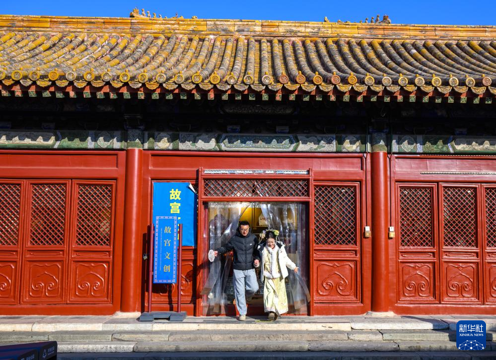 1月24日,游客从故宫文创空间内走出。新华社记者 金良快 摄