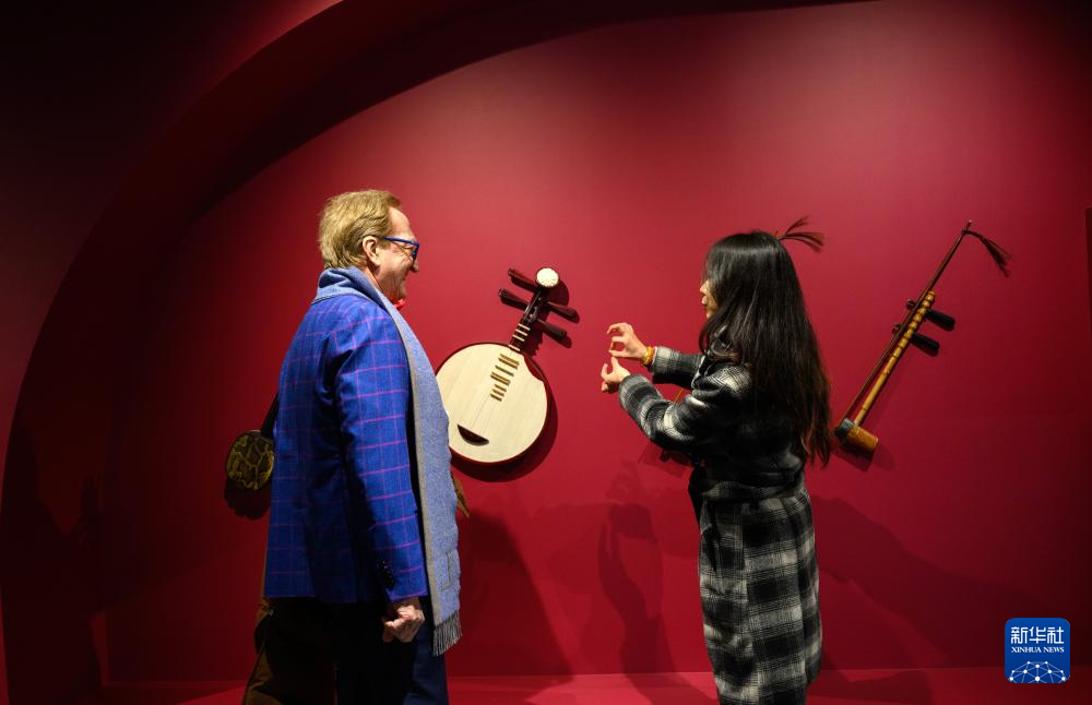 1月26日,在北京市朝阳区戏曲艺术中心,中外观众参观“百年风华·国粹新声”京剧艺术主题展上展出的乐器。新华社记者 金良快 摄