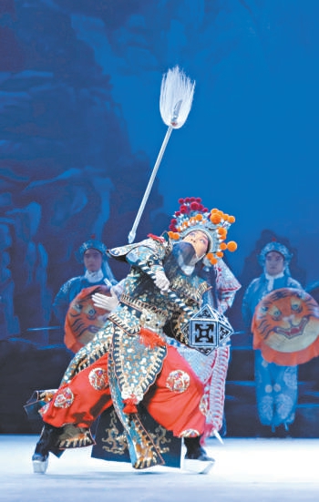 王大兴扮演的陆登,呈现了众多高难度动作,每个唱念做打、每次腾挪转跃,都饱含情感张力。演武戏,他功架优美、开打勇猛;演文戏,他也是亮点频出。如陆登夫妇辞别母亲娇儿时的“三拜”,每拜一次,灯光色调转换一次,观众的心便随之揪疼一分,眼眶中逐渐氤氲的泪便凝结一分,陆登夫妇的精神高度便提升一分。那份家国难以两全的痛楚,透过舞台直抵人心。