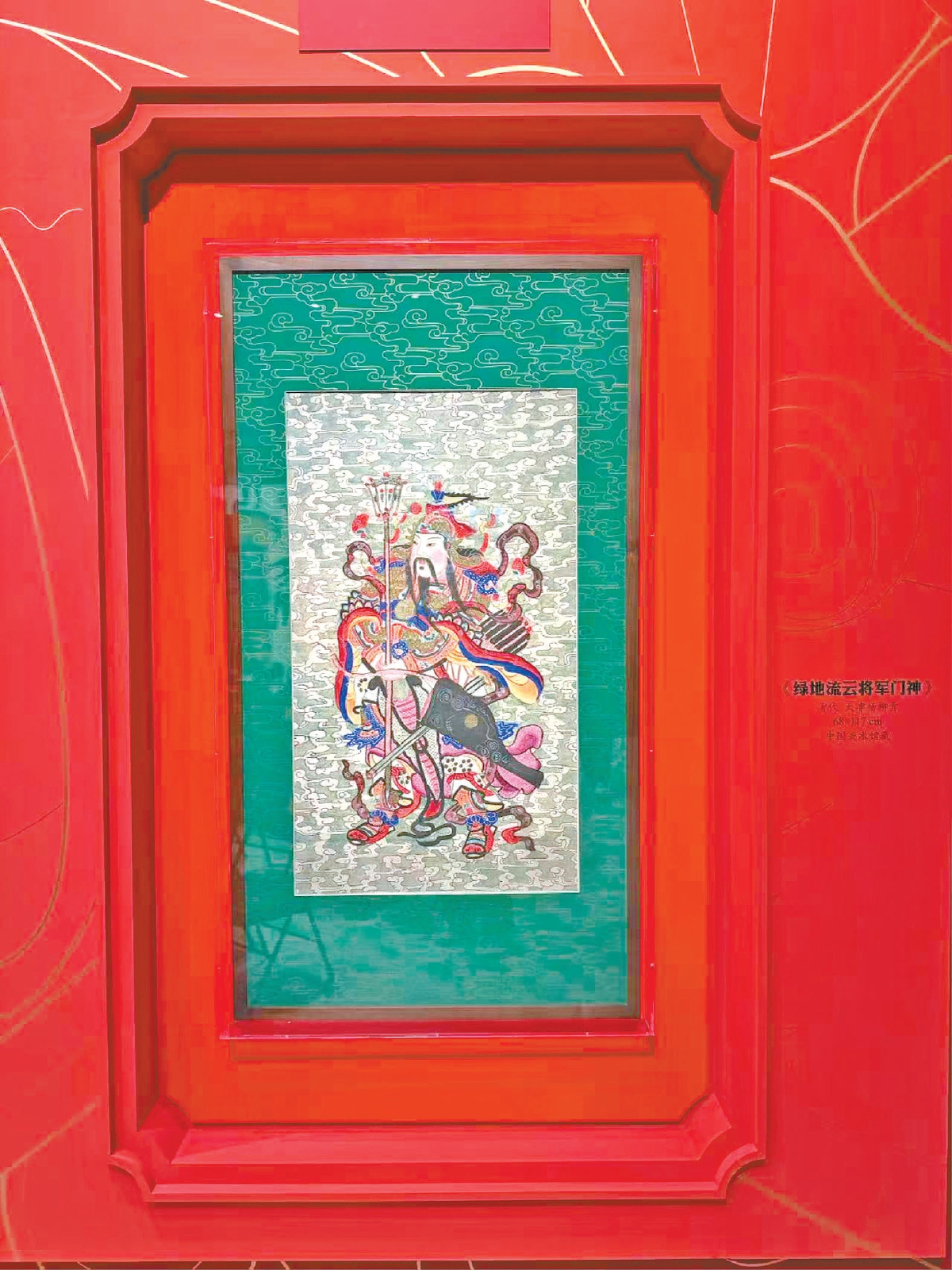 一走进中国美术馆一层展厅,迎面就看见两幅红红火火的杨柳青年画《绿地流云将军门神》,那股子喜庆劲儿,立马把人带进了过年的氛围里。展厅一分为二,“奔腾启新——致敬老艺术家美术精品展”和“跃马春风——楹联书法作品展”两个不同主题的展览相映成趣,把整个大厅烘得热闹又雅致。