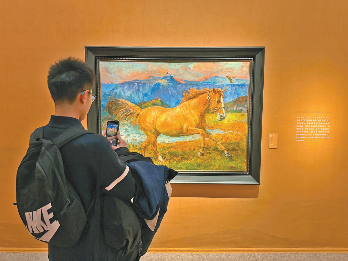 或于奔腾骏马前感悟精神力量,或于雅致书联前品味传统墨韵,或于民间艺术前感受浓浓年味。北青报记者在中国美术馆看到,五大专题展览构建的艺术世界让不同年龄不同身份的观众沉浸在马年新春的美好寓意中。