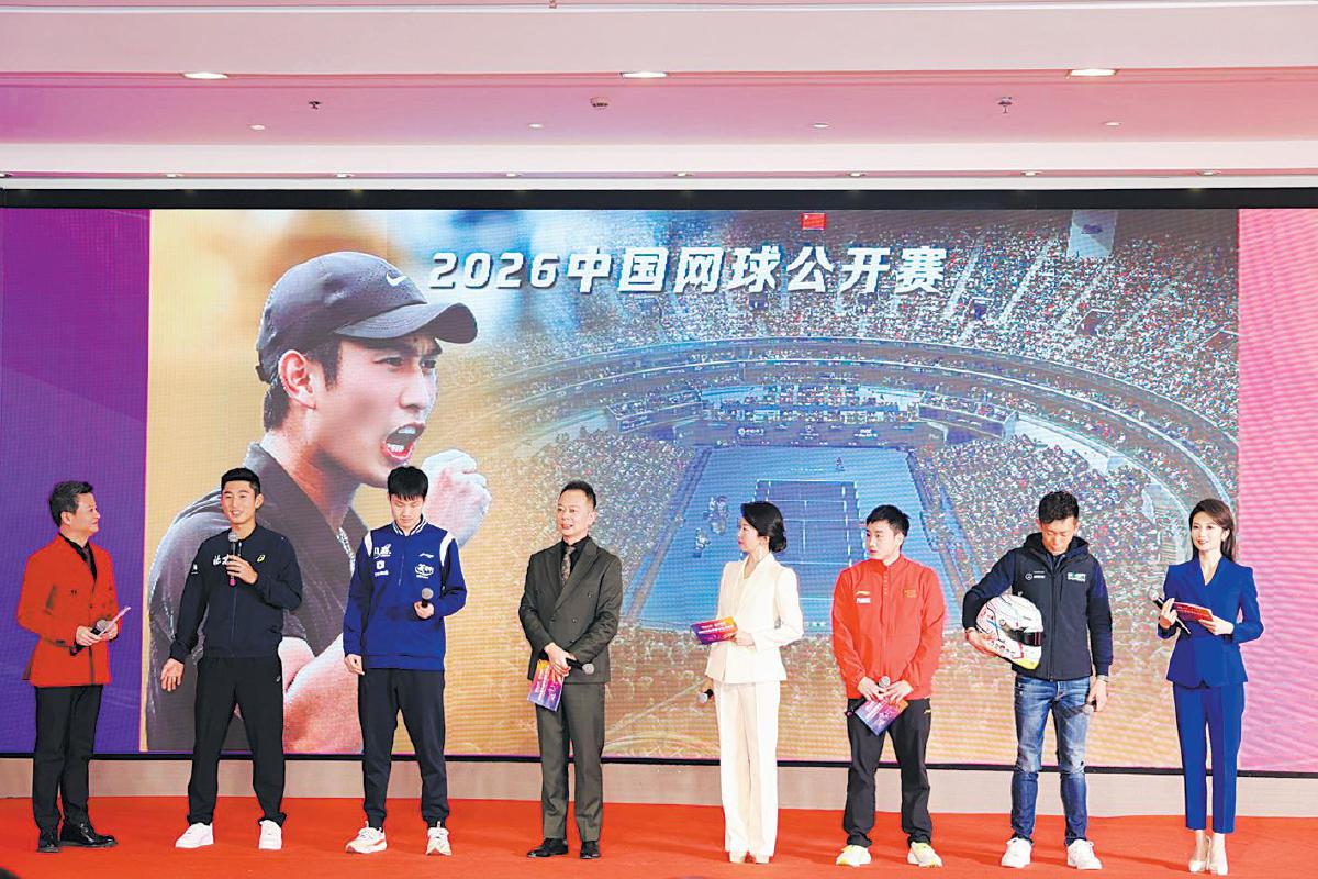 商竣程(左二)等运动员推介中网等赛事。 北京市体育局供图