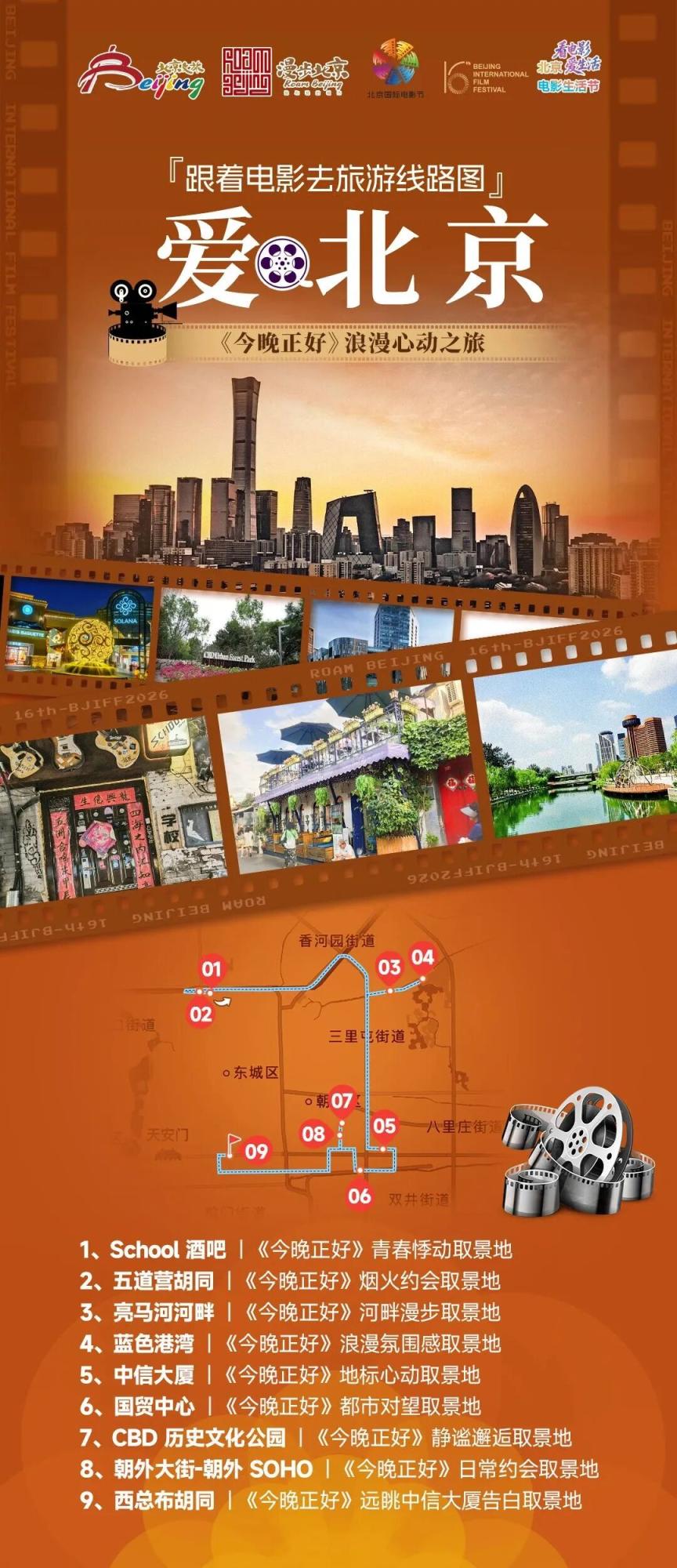 北京市文化和旅游局推出10条“跟着电影去旅游”主题线路,让观众们在光影的世界里尽情翱游。