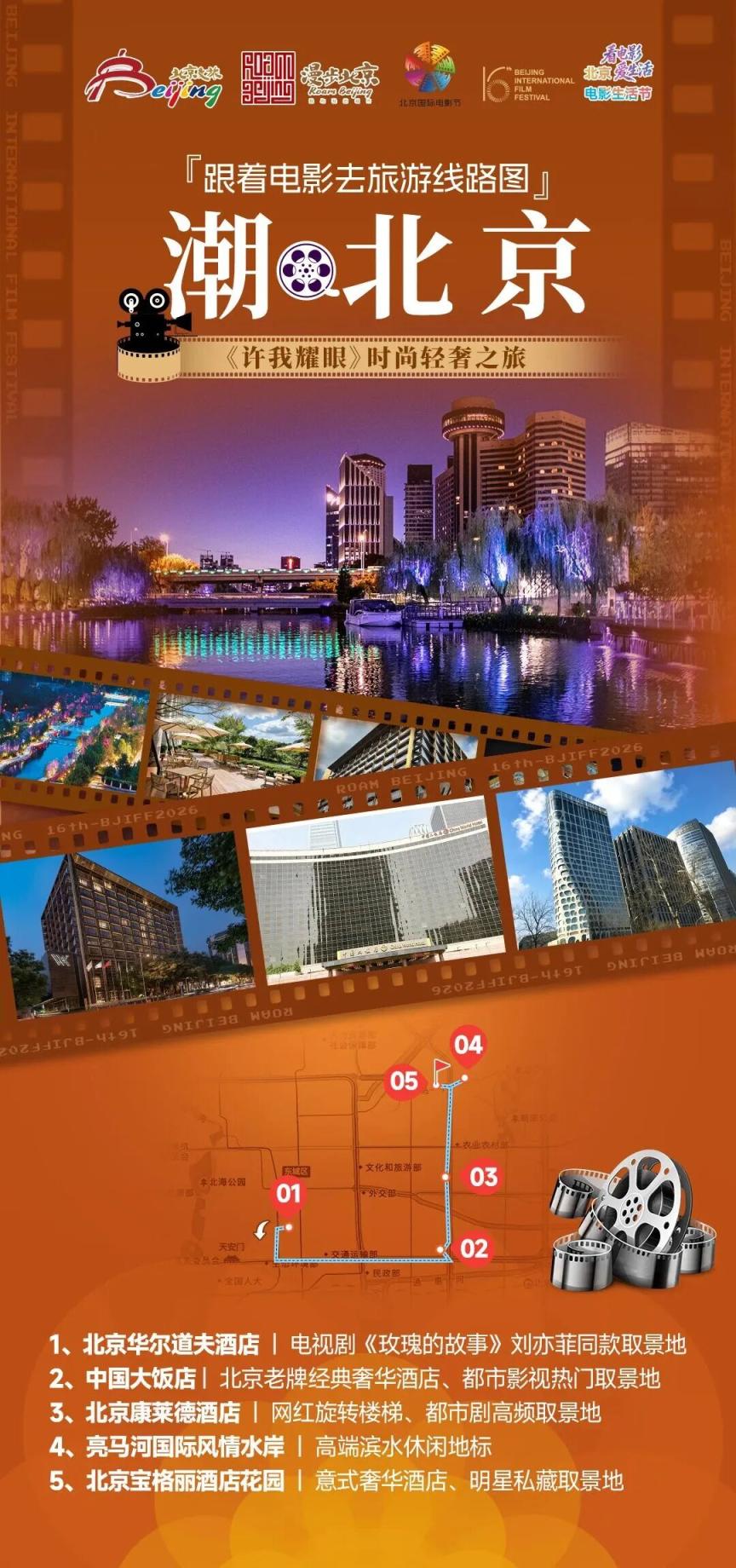 线路解说:这条高端轻奢线路聚焦都市顶流酒店与潮流地标,打卡热播剧同款奢华场景,感受京城高端生活方式。从华尔道夫酒店的明星同款场景,到老牌奢华中国大饭店,再到设计感满满的康莱德酒店,全程解锁影视剧中的奢享名场面;漫步亮马河感受滨水雅致氛围,最终抵达宝格丽酒店,沉浸式体验意式顶奢魅力,打造专属高端人群的光影轻奢之旅。