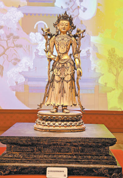展览从精品文物、壁画临摹、数字科技、活态演绎、学术交流、非遗展示、文创开发七大维度出发,为观众打造全方位、沉浸式的文化体验。展出的重点文物包括新石器时代舞蹈纹彩陶盆、明代永宣宫廷造像巅峰之作——明永乐款鎏金铜观音菩萨像、明代茶马互市国家信用凭证金牌信符,见证丝路繁华的唐代镶绿松石金链等,均为青海不同历史时期代表性的典型文物。